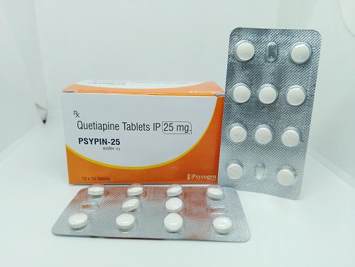 Quetiapine Fumarate Tablets come with the brand name âPSYPIN-25â and belong to a group of medications called âantipsychoticsâ. It is used in the treatment of bipolar depression, mania and schizophrenia. Bipolar disorder is characterized by manic episodes of excitement or euphoria and depression. Schizophrenia is characterized by symptoms of hallucinations (seeing or hearing things that are not real) and delusions (wrong beliefs).